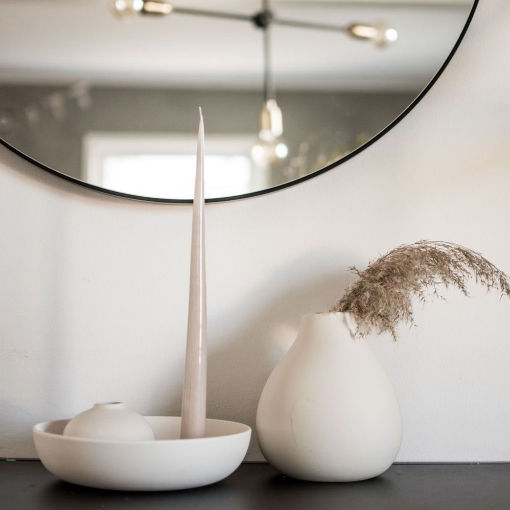 Ein schönes, großes Tablett. Ein paar tolle Kerzenständer und eine schöne Vase. Fertig ist die Tisch-Deko.