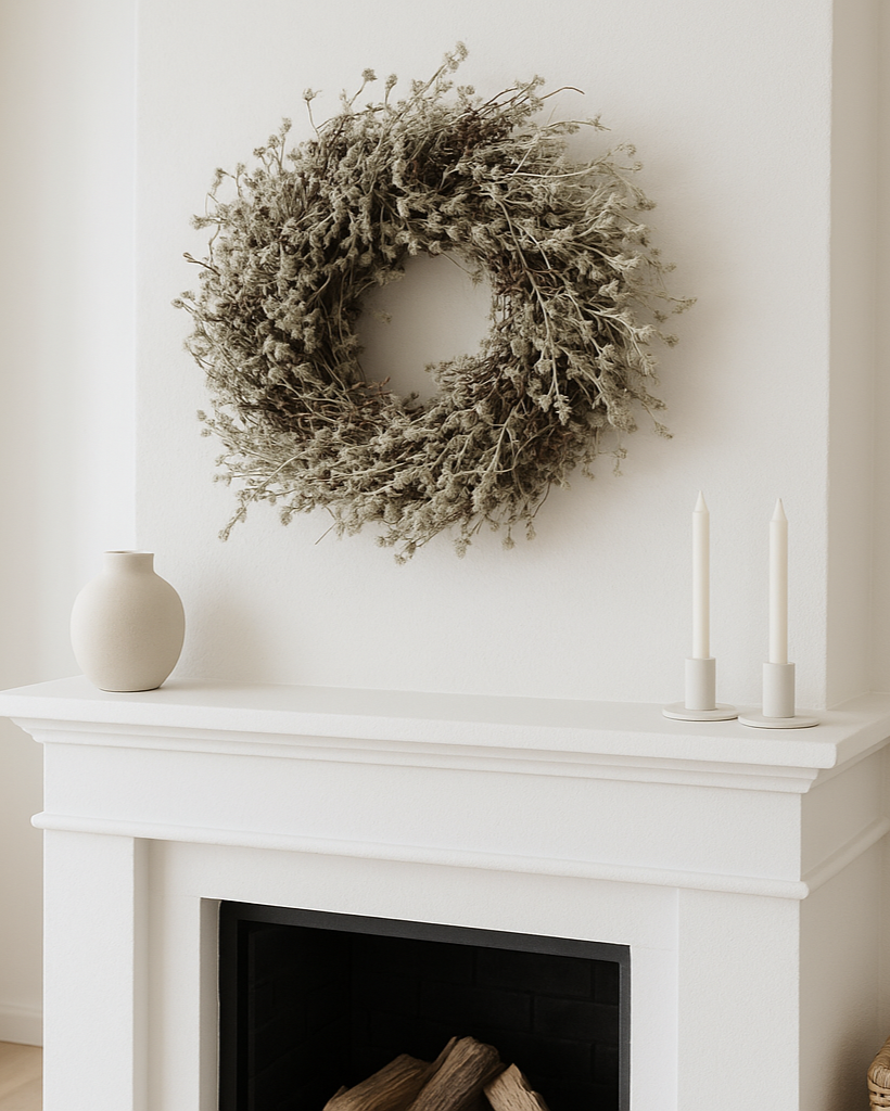 Ob an der Wand, der Tür oder als Tischdeko mit Kerzen – dieser Kranz ist vielseitig einsetzbar und wirkt durch seine natürliche Farbgebung besonders authentisch.