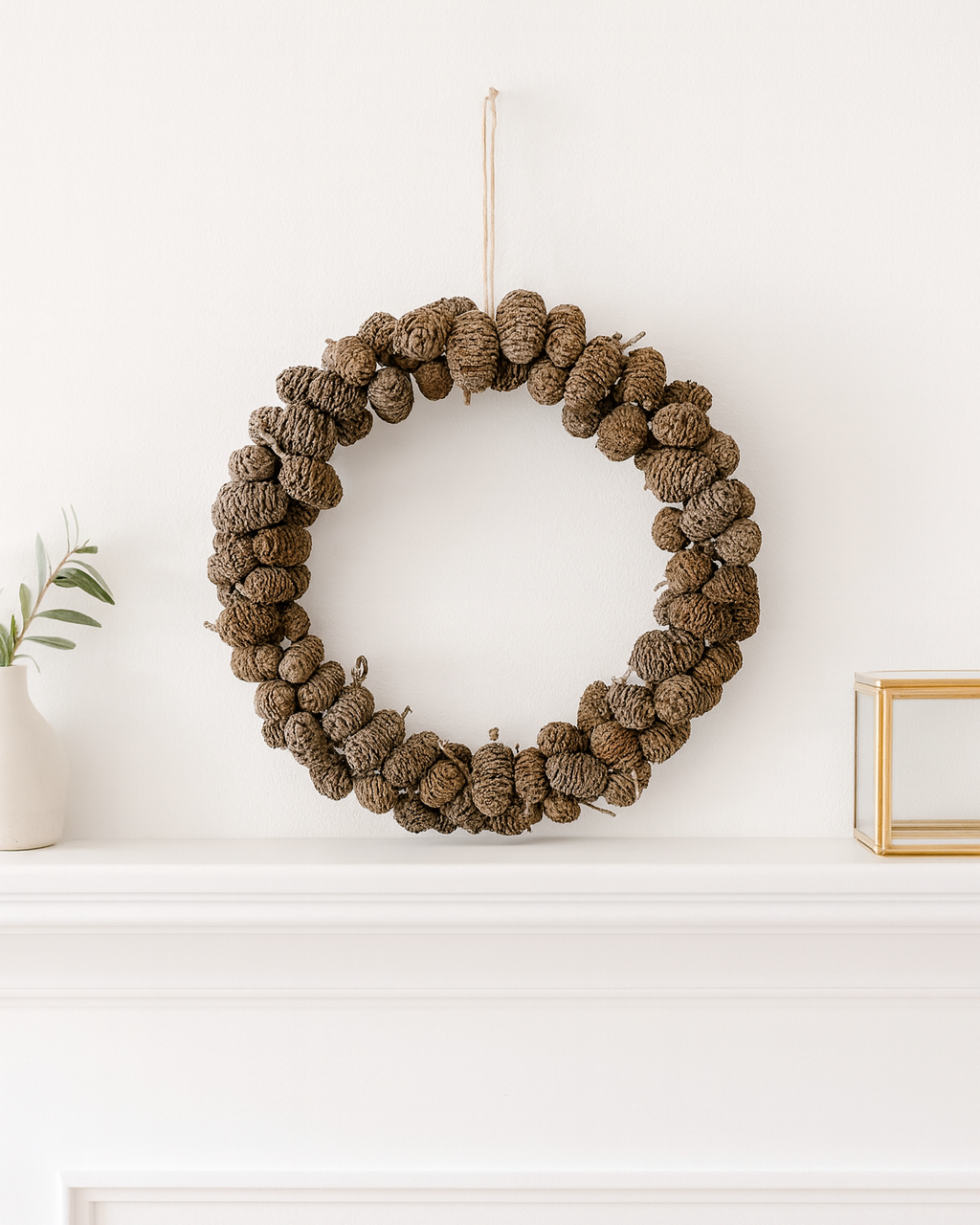 Dieser handgefertigte Naturkranz aus Erlenzapfen überzeugt durch seine rustikale Optik und natürliche Struktur. Gefertigt aus echten Erlenzapfen bringt der Kranz eine warme Atmosphäre in deine Dekoration.