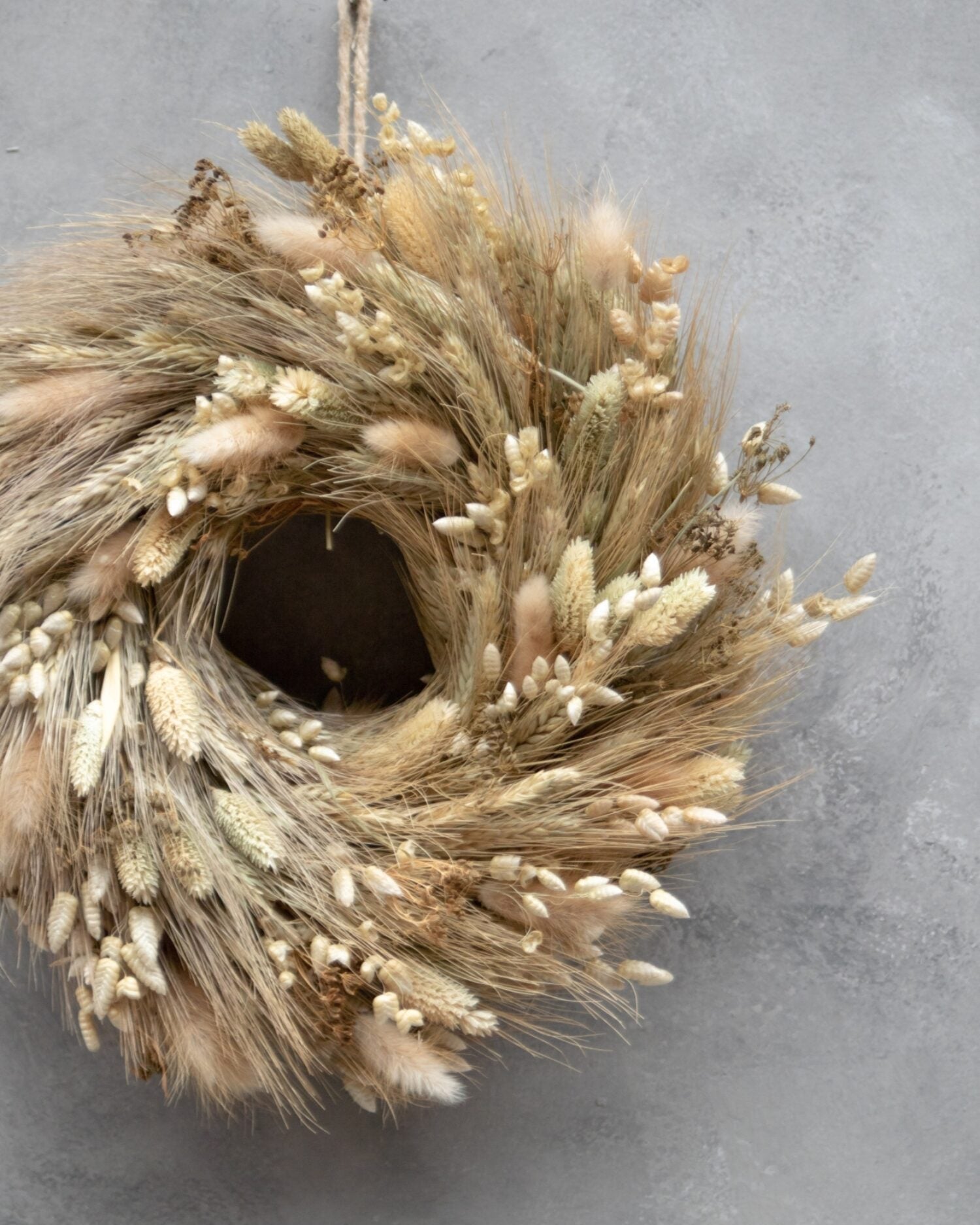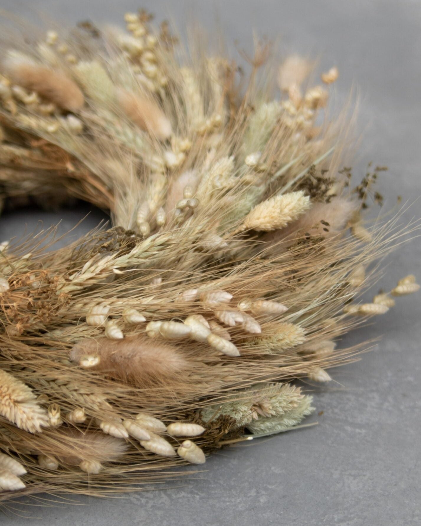 Trockenblumenkranz aus Lagurus, Phalaris, Weizen, Zittergras & Fenchel – naturbelassen & handgefertigt
