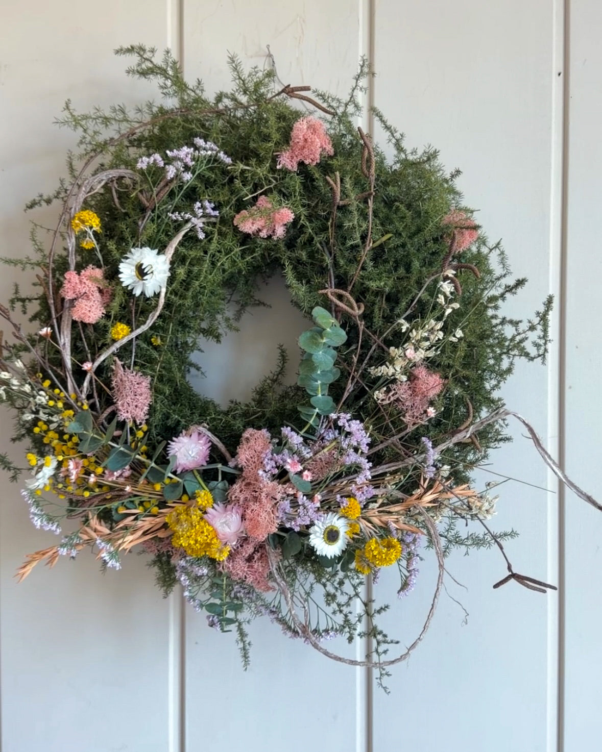 Ob über dem Kamin, an der Wand oder als Tischdekoration – dieser Kranz ist ein echter Blickfang in jeder Saison. Dank seiner natürlichen Materialien strahlt er Gemütlichkeit aus und lässt sich vielseitig mit anderen Deko-Elementen kombinieren.