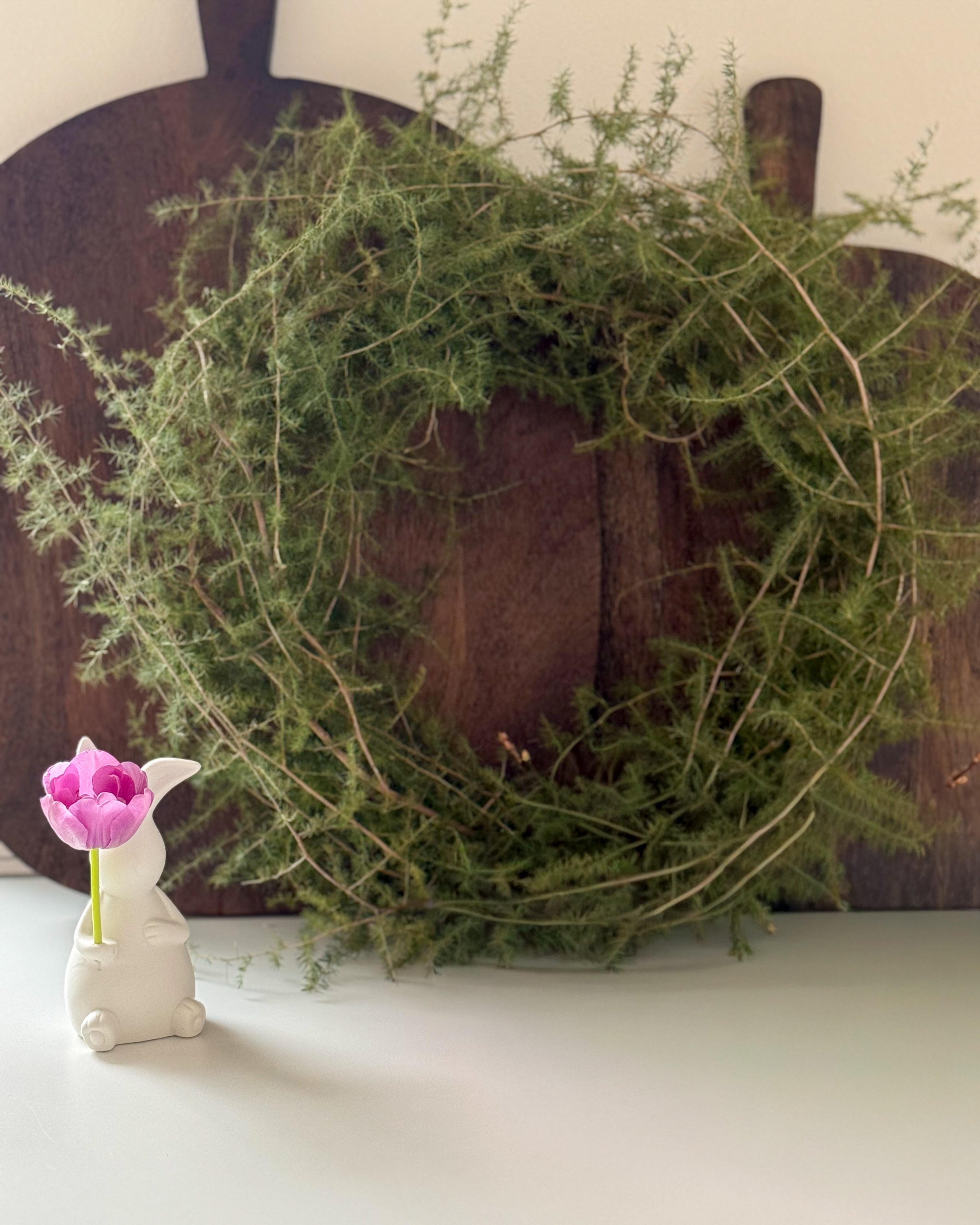 Dieser handgefertigte Kranz aus echtem Asparagus bringt natürliche Schönheit in dein Zuhause. Die dicht gebunden Zweige verleihen dem Kranz eine warme Ausstrahlung, dass garantiert in jeden Einrichtungsstil passt.