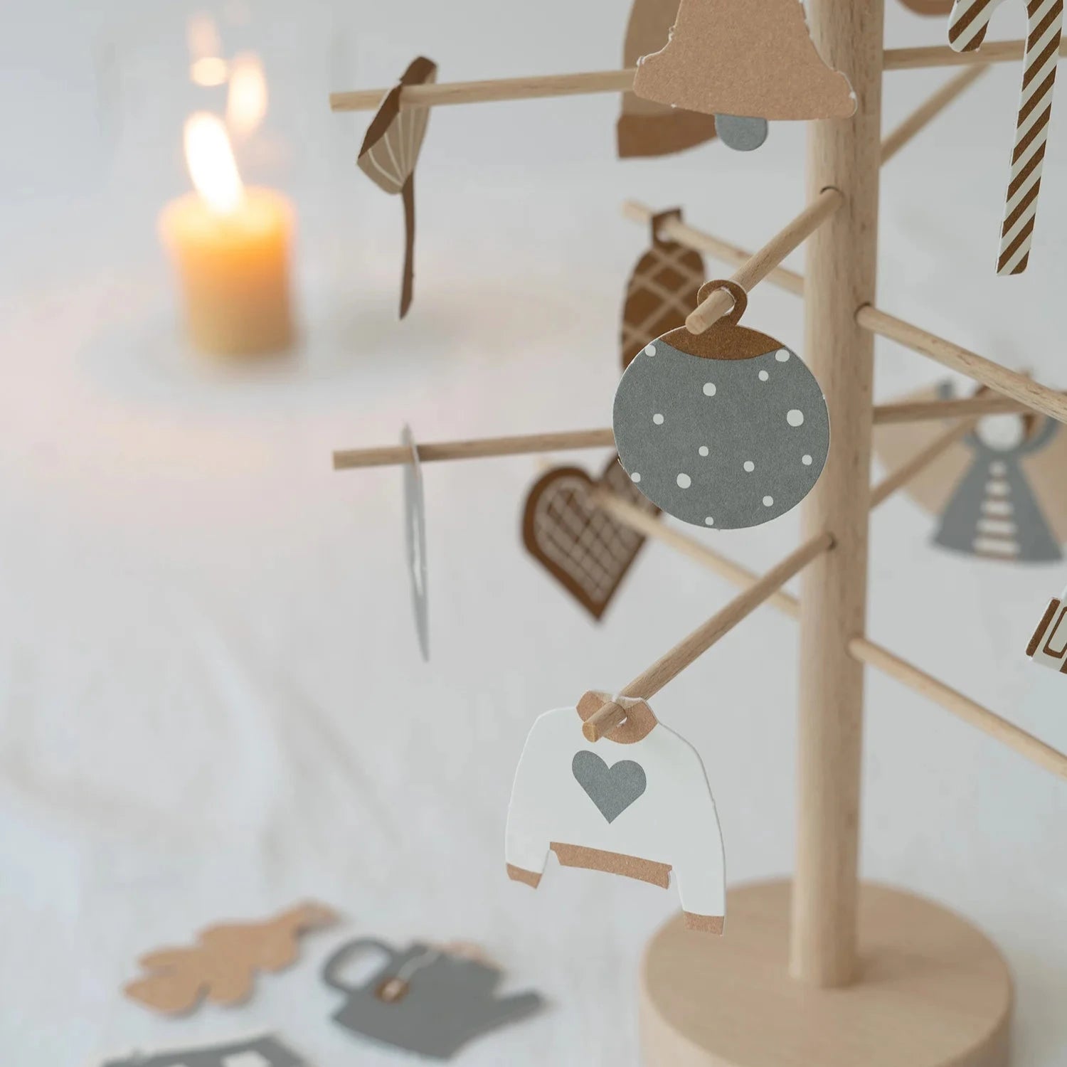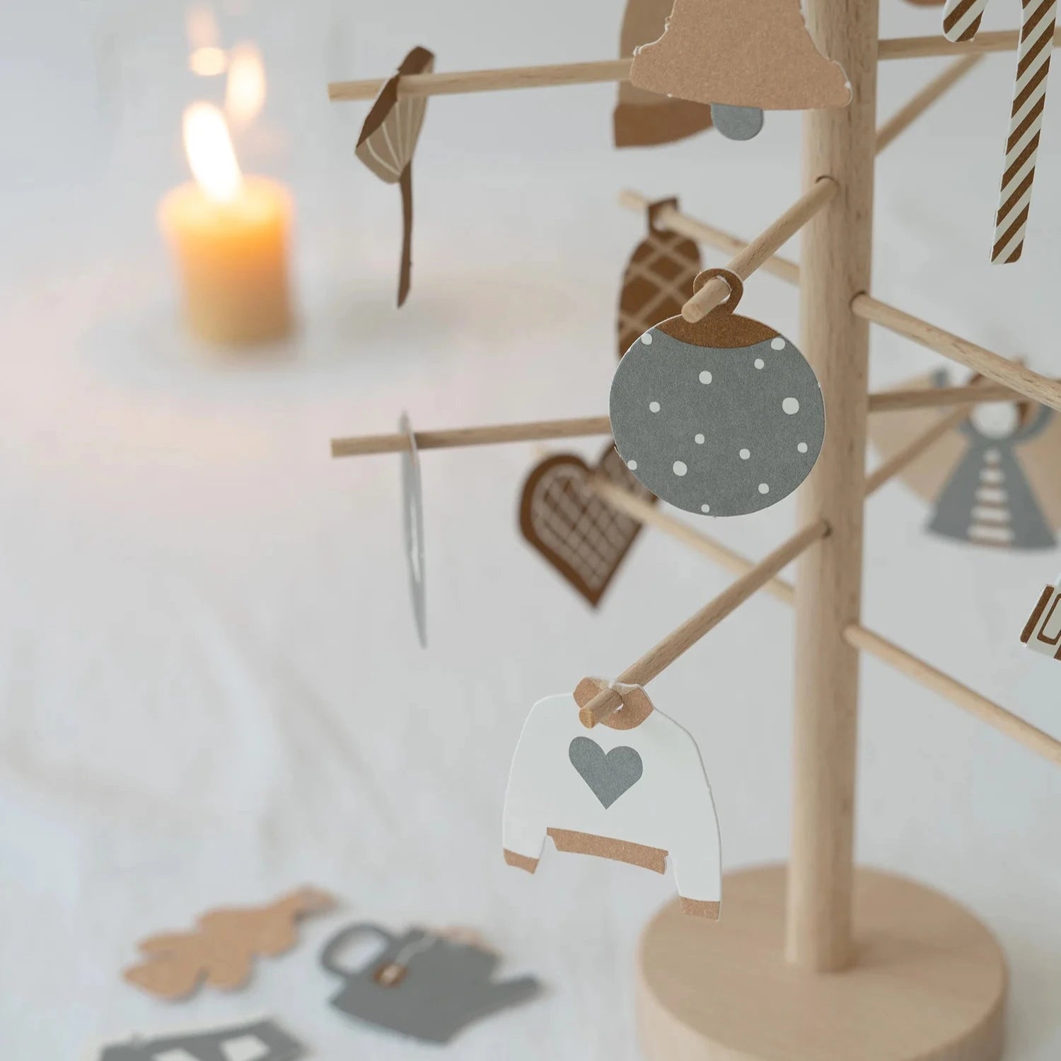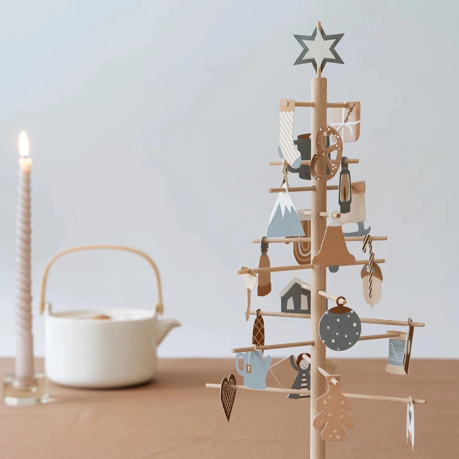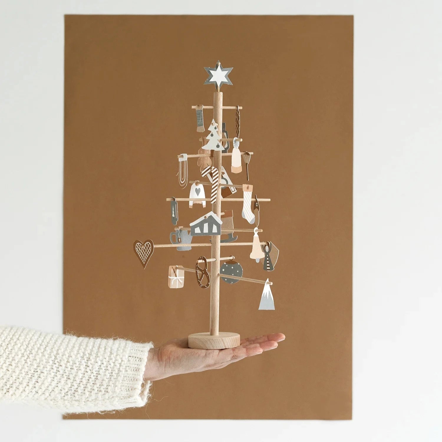 Beginne mit diesem Adventsbaum eine neue Tradition! Nimm dir jeden Tag ein paar Minuten Zeit für ein kleines Ritual, beginnend am 1. Dezember. Wähle ein Ornament aus und hänge es an den Baum.