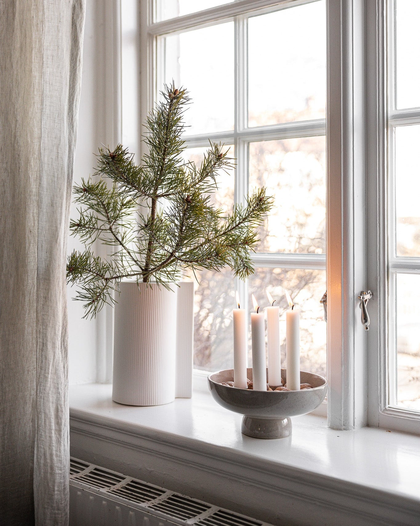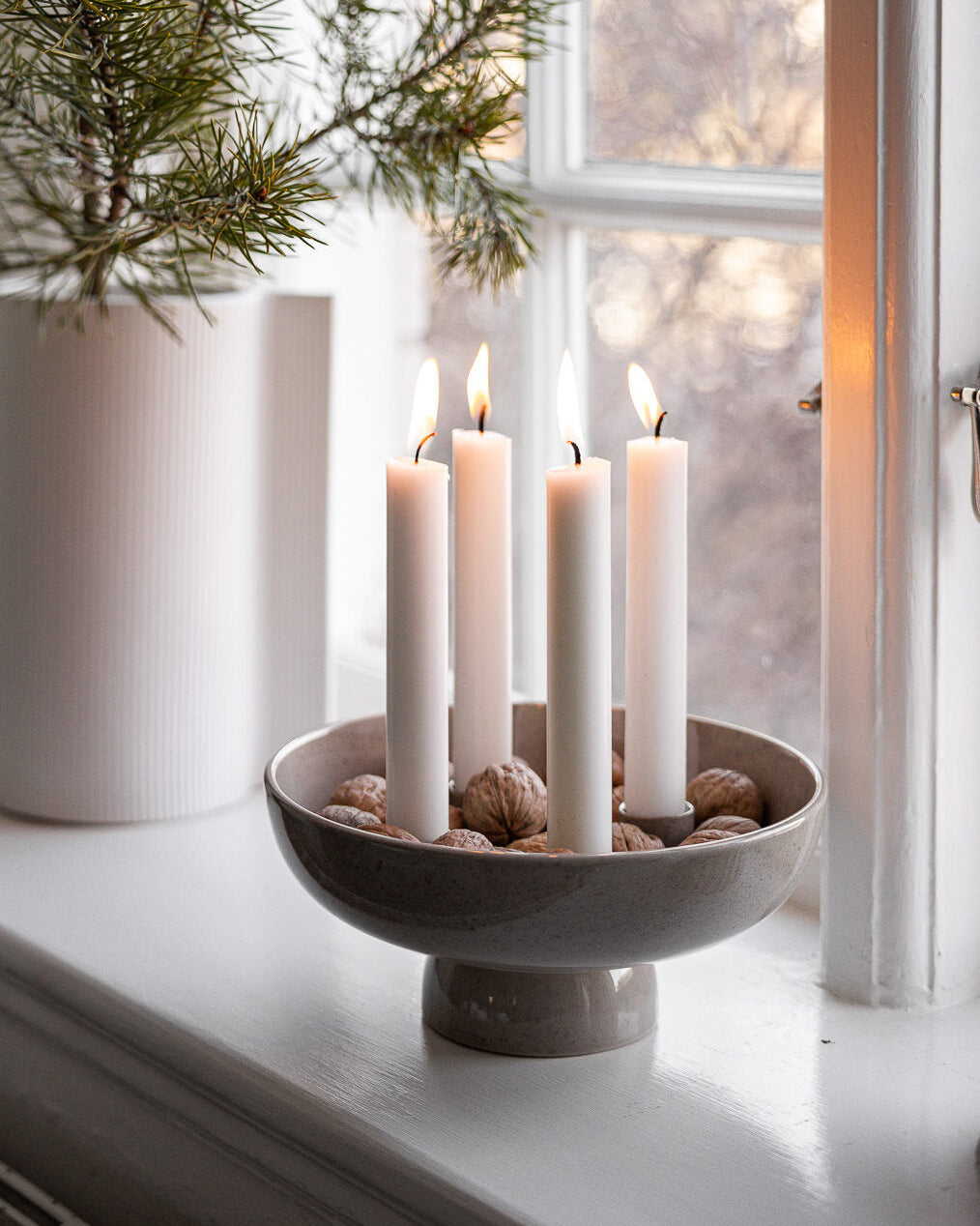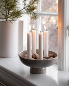 Kerzenständer aus lasierter Keramik. Werde kreativ und dekoriere ihn das ganze Jahr. Mal mit Moos und Tannenzapfen – mal mit Blumenkränzen und Stroh.