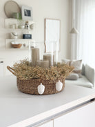 Dieser Distelkranz ist natürlich und sehr vielseitig. Dank seines geringen Gewichts lässt er sich einfach aufhängen. Der Kranz besticht durch seine Schlichtheit und lässt sich ganz einfach mit hübschen Trockenblumen füllen. Verleih ihm deine ganz persönliche Note!