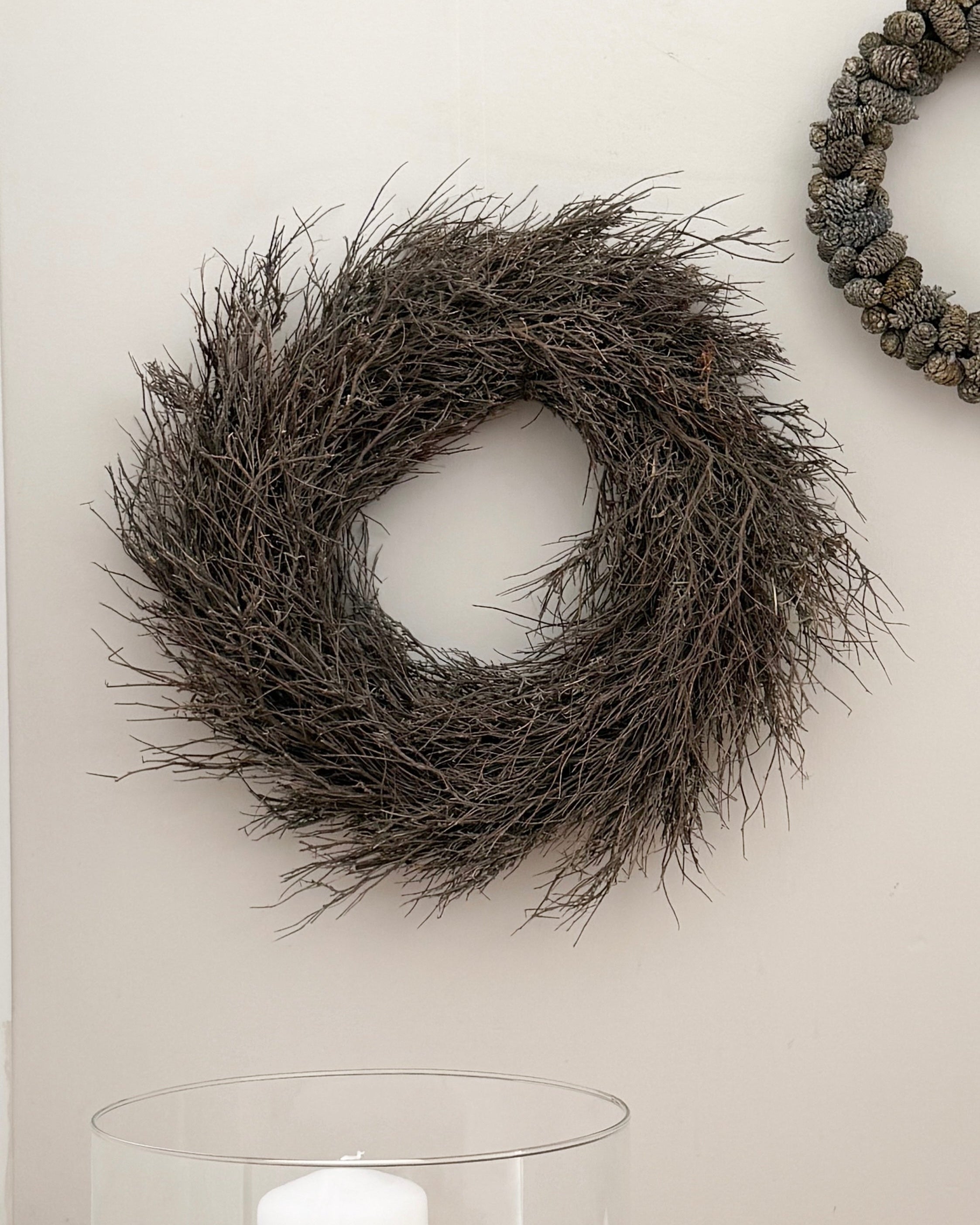 Ob pur als naturnaher Akzent oder saisonal geschmückt – dieser Kranz lässt sich vielseitig einsetzen.