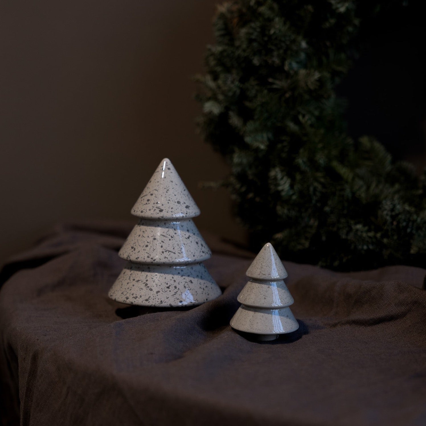 Tannenbäume aus mattierter Keramik, stilvoll und schlicht. Kombiniert mit weiterer Keramikdekoration entsteht ein wunderbares Wintergefühl.