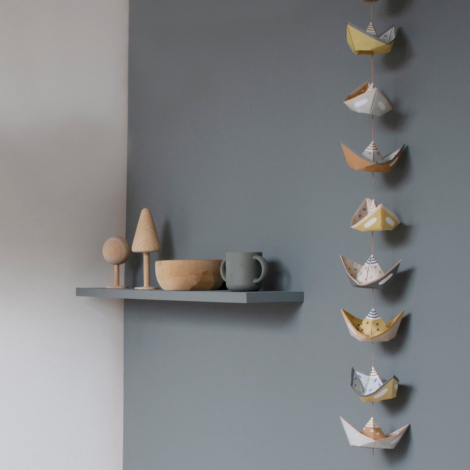 Auf Draht aufgefädelt, wird aus dieser kleinen Flotte ein fröhliches Mobile für das Kinderzimmer! Ein schönes kleines Geschenk.