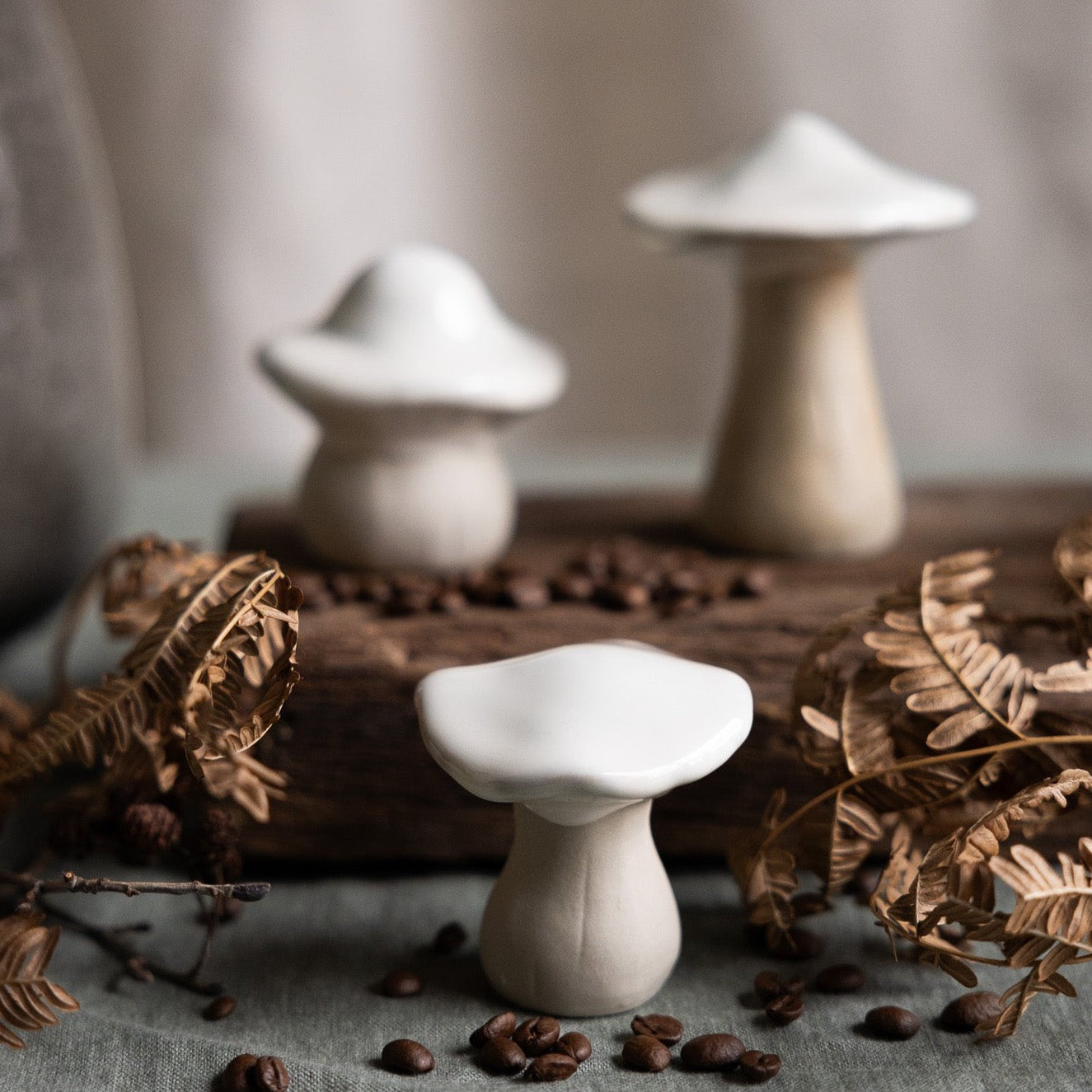 Pilze aus Keramik.