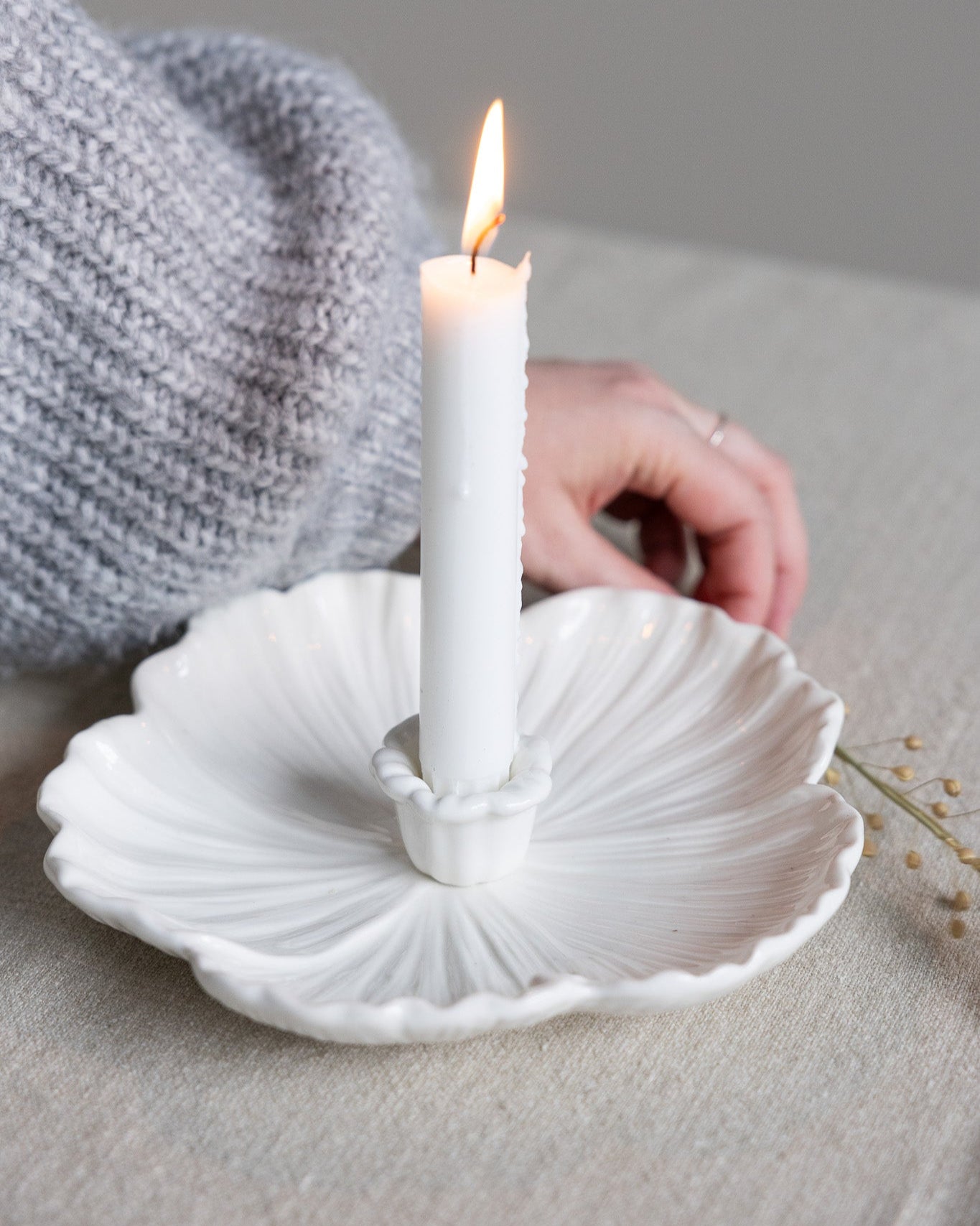 Bringe sanftes Licht und stilvolle Natürlichkeit in dein Zuhause mit unserem handgearbeiteten Kerzenhalter „Botanik“. Gefertigt aus hochwertiger Keramik und geformt wie ein zartes Blütenblatt, verbindet dieses Stück zeitlose Ästhetik mit funktionalem Design. Die organische Form verleiht jedem Raum eine ruhige, warme Atmosphäre – perfekt für gemütliche Abende, besondere Anlässe oder als stilvolles Deko-Element.
