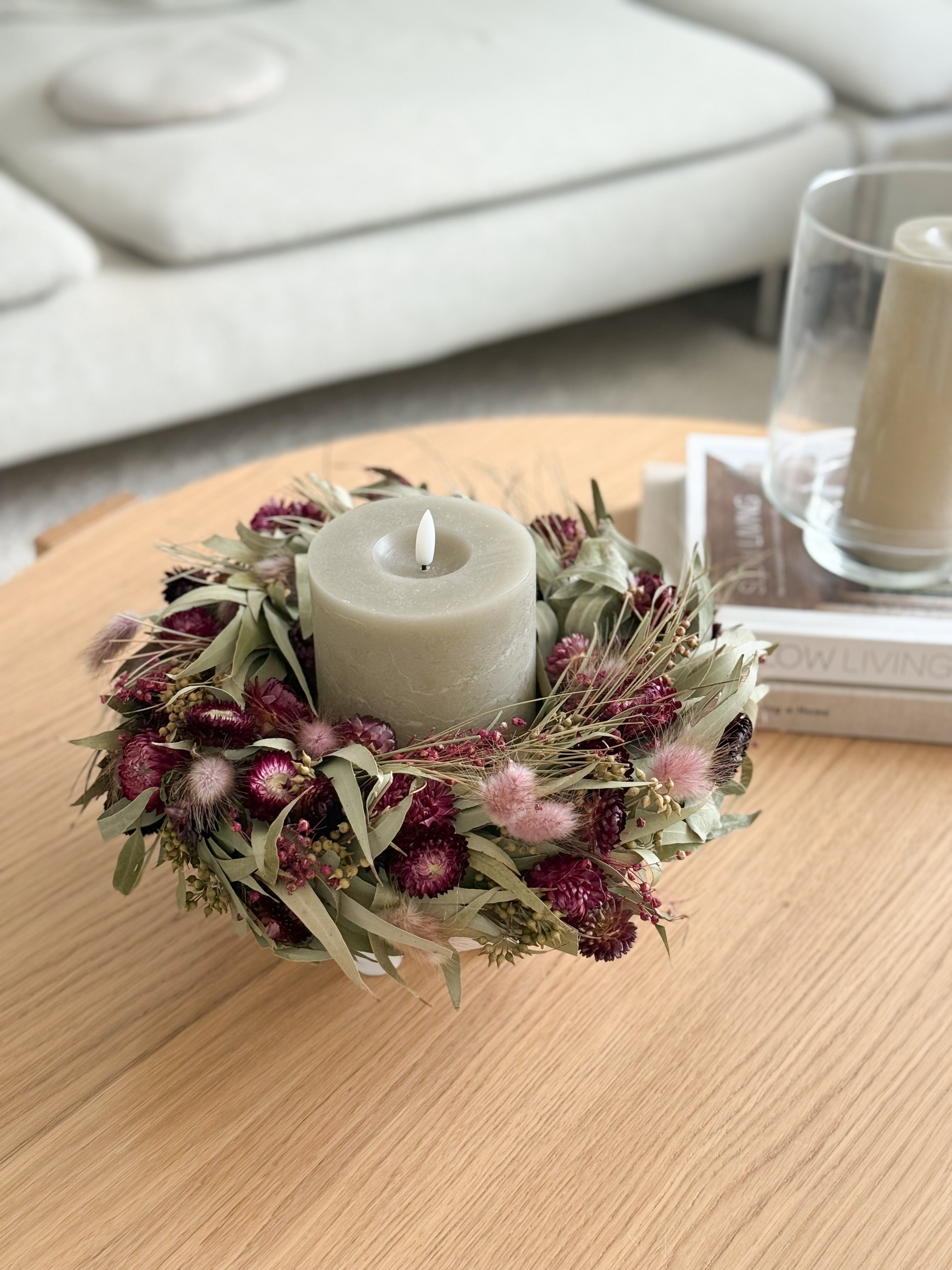Ob als stilvolle Wanddekoration, Türkranz oder auf dem Tisch als Centerpiece – dieser Kranz bringt das ganze Jahr über florale Eleganz in Ihr Zuhause, ganz ohne Pflegeaufwand.